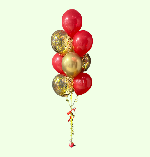 - Гелиевые шарики красного и золотистого цветов 10 шт;