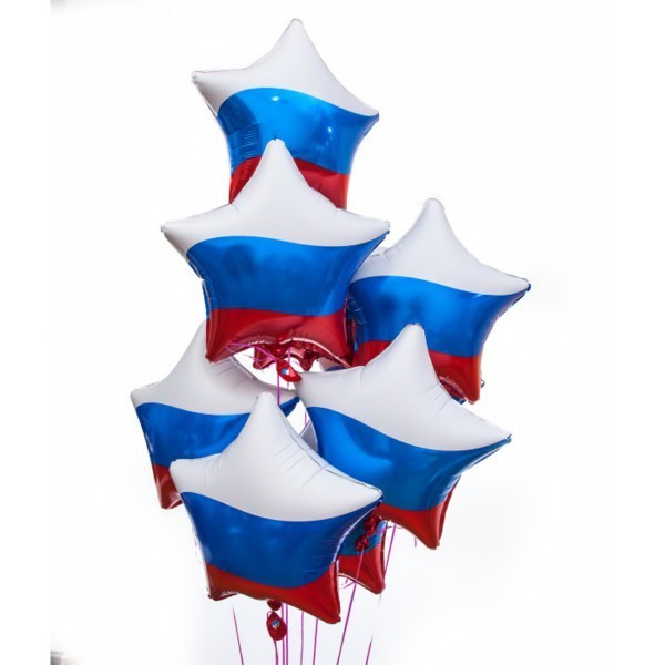 Шары (18/46 см) Звезда - 7 шт., Триколор флаг России.