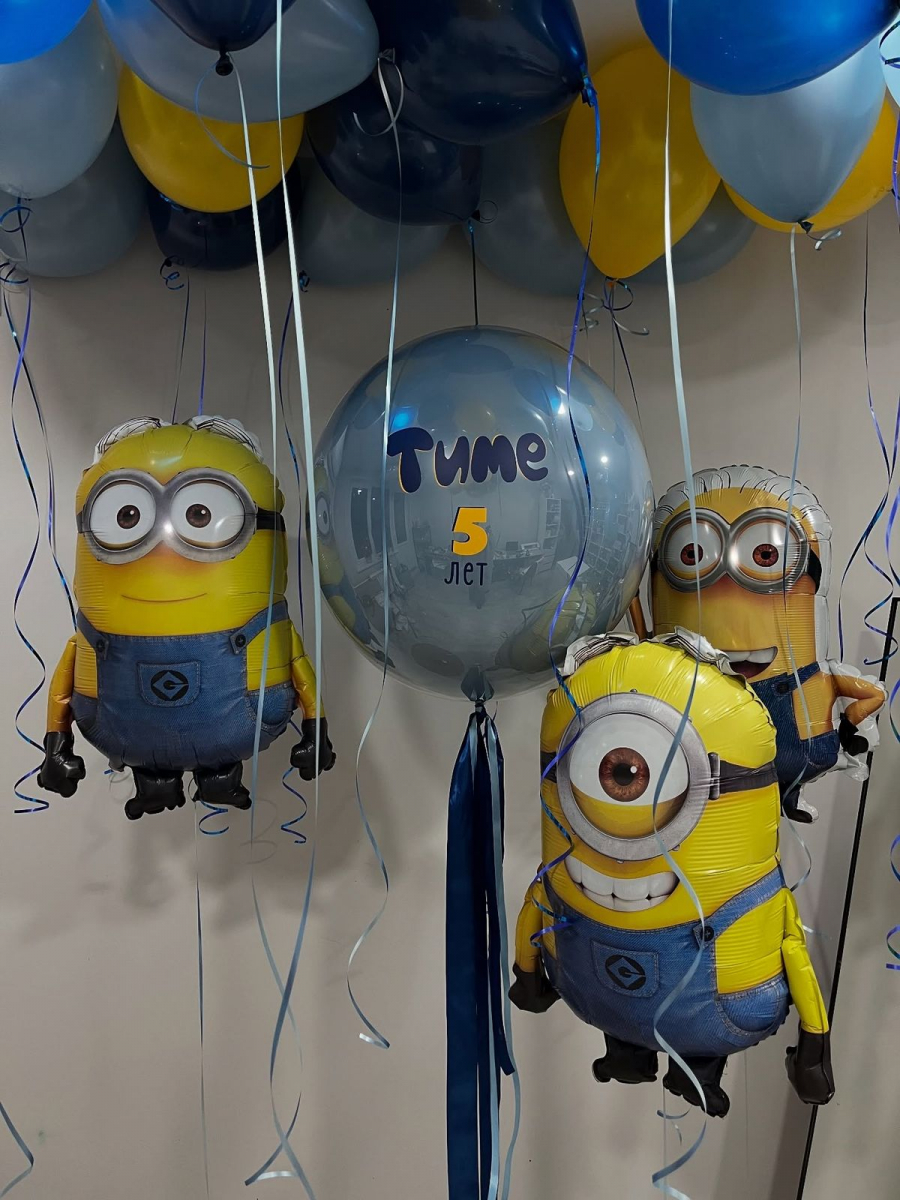 Готовое решение «Веселые миньоны» в интернет-магазине OCEAN BALLOONS. Заказать с доставкой! Тел.: +7 (495) 773-43-75.
