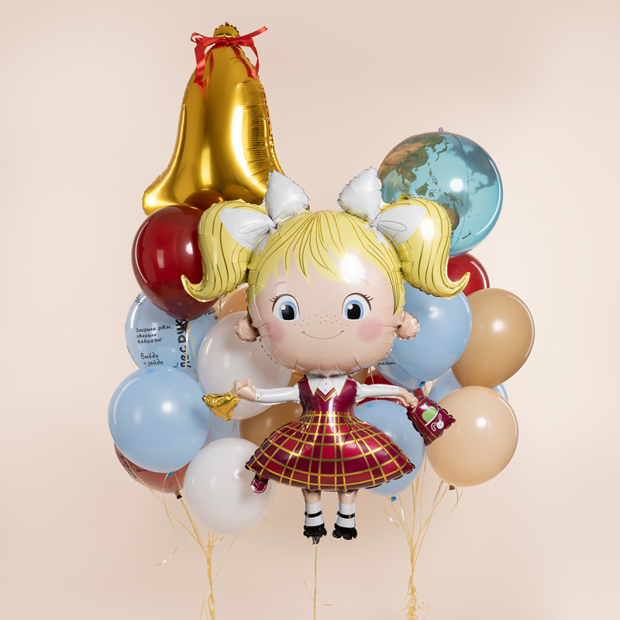 Композиция «Девочка с колокольчиком» на 1 сентября в интернет-магазине OCEAN BALLOONS. Заказать с доставкой! Тел.: +7 (495) 773-43-75.