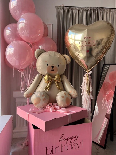 Коробка с шарами «Мишка для тебя» в интернет-магазине OCEAN BALLOONS. Заказать с доставкой! Тел.: +7 (495) 773-43-75.